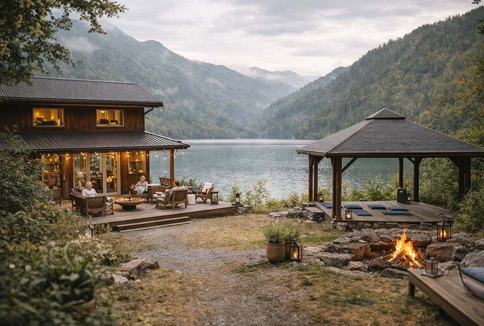 The Serenity Retreat House offers a peaceful and welcoming environment, perfect for relaxation, reflection, and group sessions.